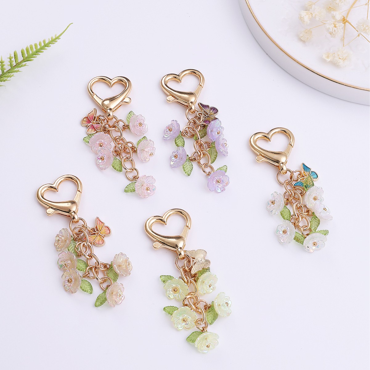 新しいカラフルな甘い花ペンダント動物蝶犬アクセサリー亜鉛合金キーホルダーペンダントホリデーギフト