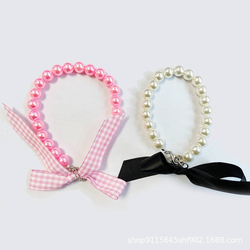 新しいプラスチックの純色のシンプルなペットのネックレスの蝶結びのペンダントのお姫様風真珠の首輪猫と犬のアクセサリーの現物