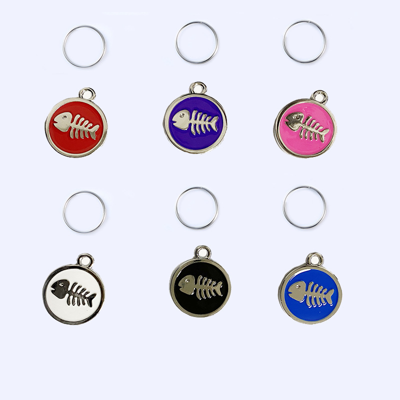 ホット販売新しいラウンド亜鉛合金フレーム魚骨パターン猫犬ブランドペット首輪ストラップアクセサリー紛失防止刻字