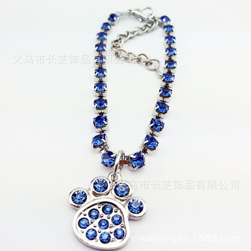 希音拼多多ブランドの漫画風動物の足跡ペット用首輪タグネックレス、カラーダイヤモンドとビーズをあしらったジュエリー
