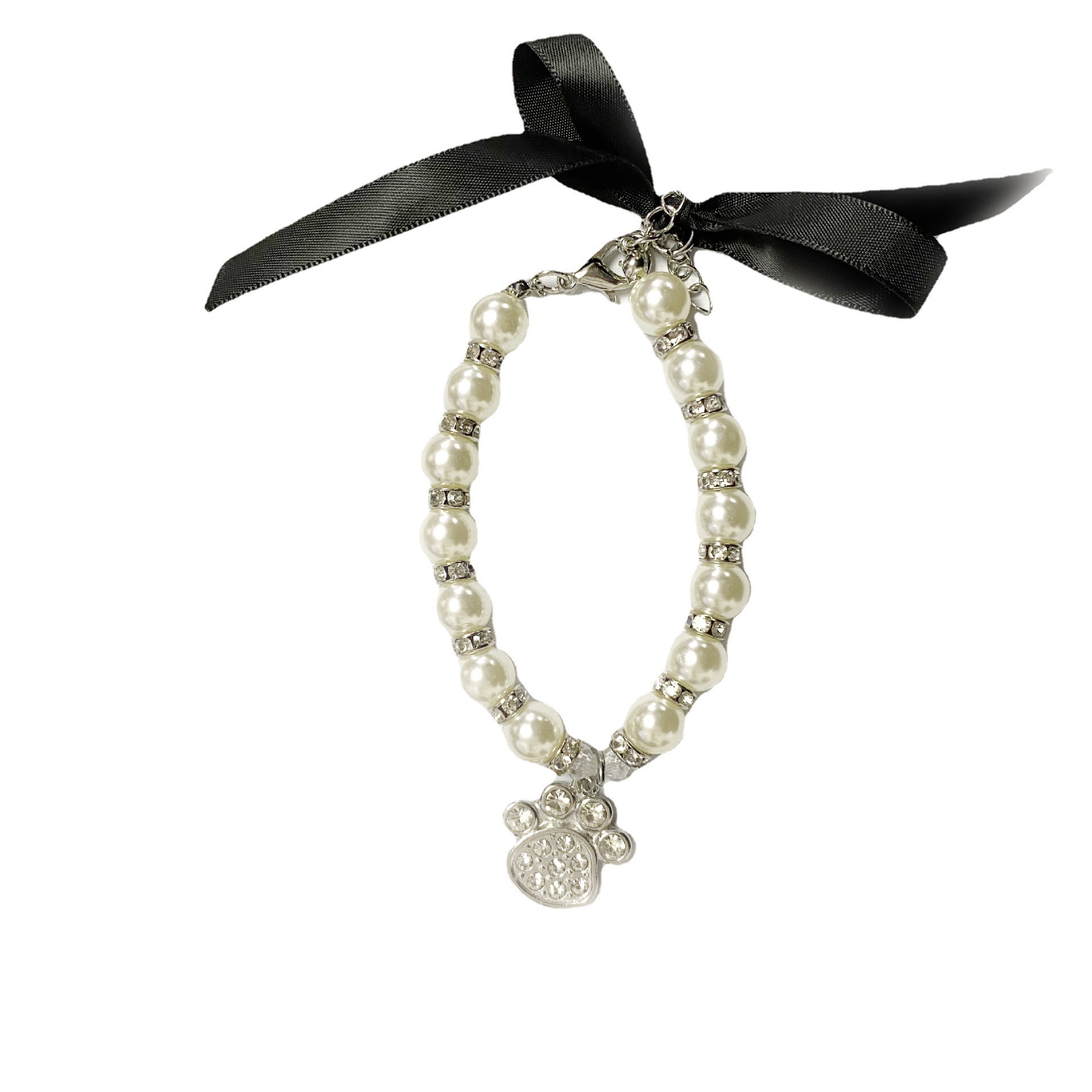 新しいタイプのダイヤモンドの足の裏の掛け物のペットのプラスチックの真珠のネックレスの蝶結びのアクセサリーの猫の犬の装飾の小さい贈り物