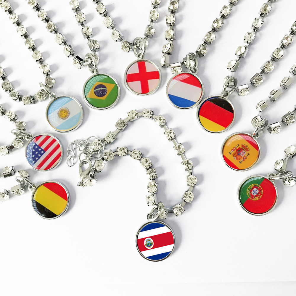 震え音爆金ワールドカップ国旗バッジアクセサリー単列シンプルなドリル首とペットネックレスのミニペンダント