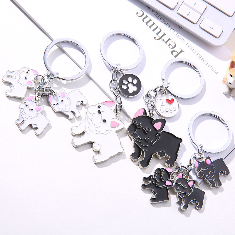 国境を越えてフランスの闘牛犬のキーホルダーを提供しています。