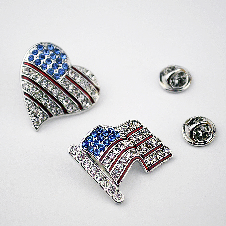 ネット赤男性ブローチ満ドリルアメリカ国旗ブローチ亜鉛合金青と白のダイヤモンド旅行記念品今