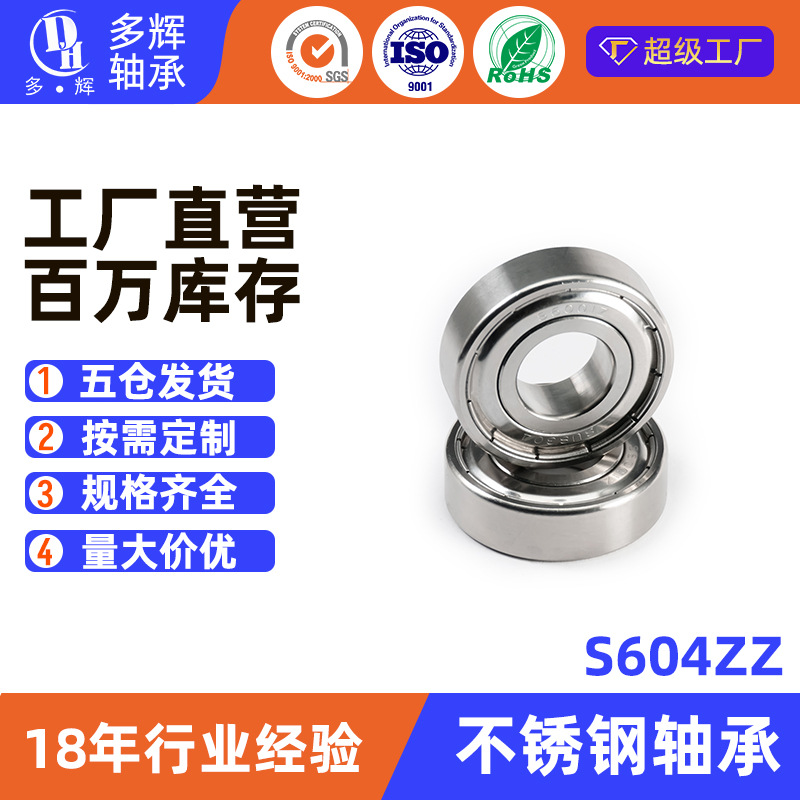 強度供給ベアリング S604ZZ 4*12*4 ミリメートルステンレス鋼シャフト深溝ボールベアリングミニチュアベアリング