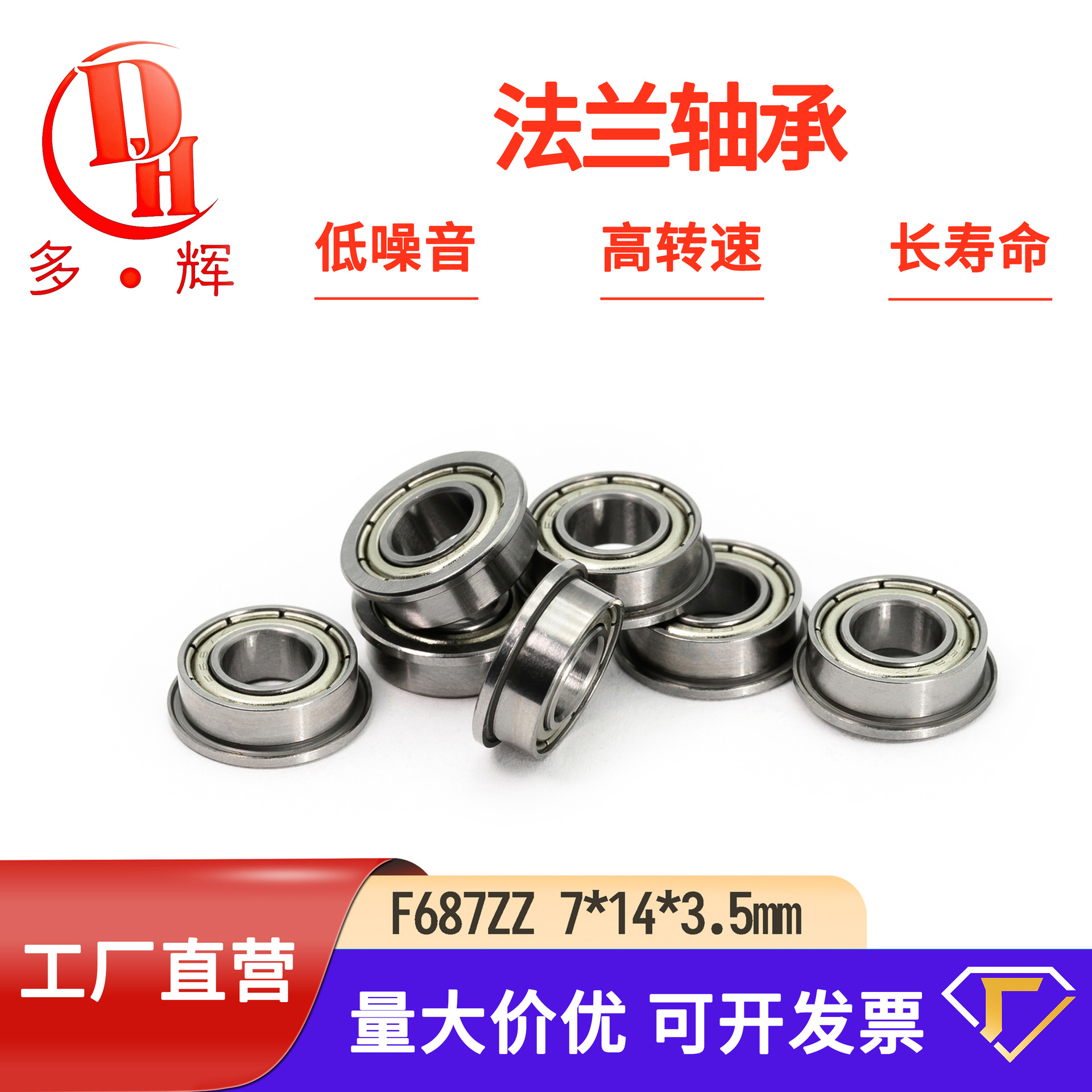 Duohui スポットフランジベアリング FR8-2RS 高精度リブ付きベアリング深溝ボールフランジベアリング