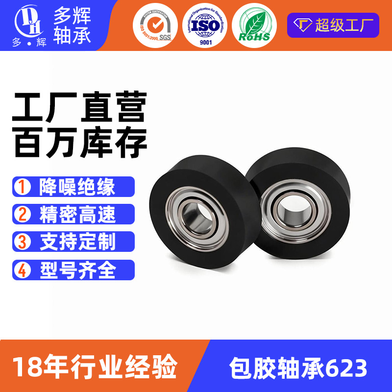 ポリウレタン被覆ベアリング623ZZプラスチック被覆ベアリング3*10*4機械加工ベアリングプラスチック被覆ベアリングカスタム