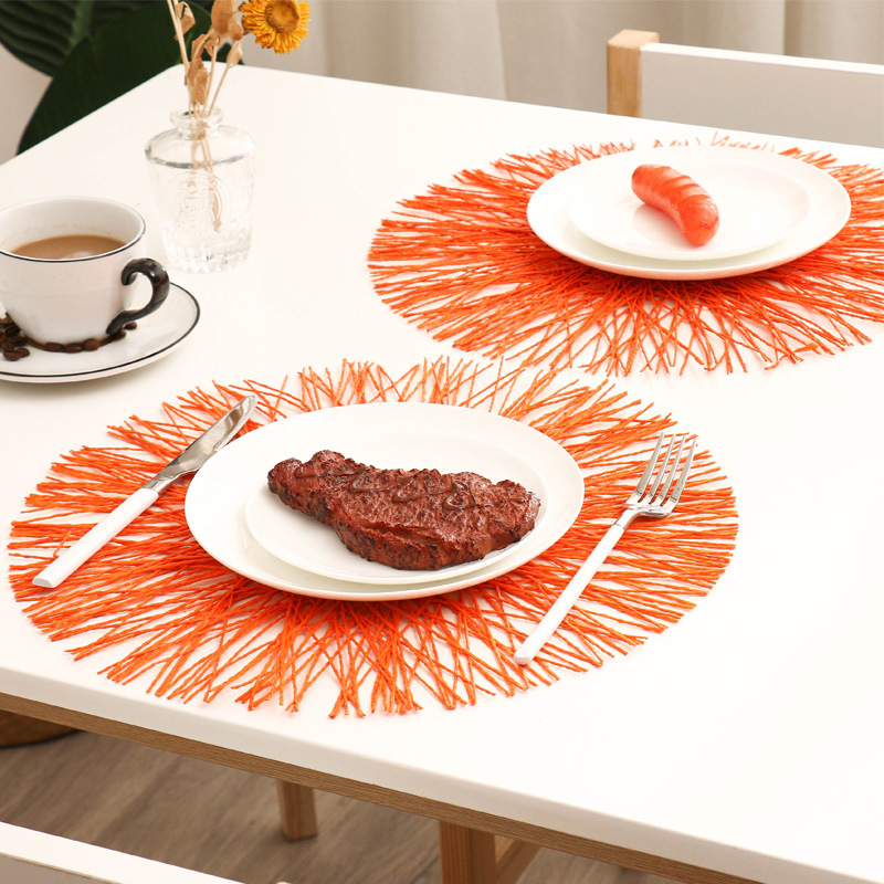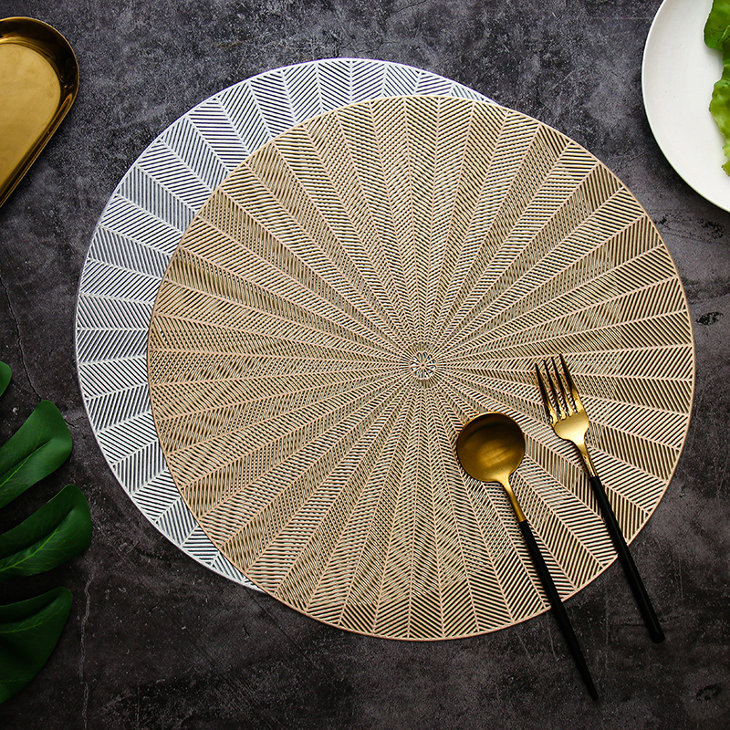 円形透かし彫りpvc家庭用洋食マット北欧の軽い豪華な箔押し純色食マット防水防油断熱テーブルマット