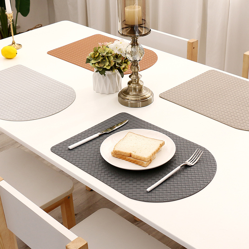 編み柄洋食マット防水防油食卓皮質断熱マット半円形食卓マットinsカップマットクロスボーダー