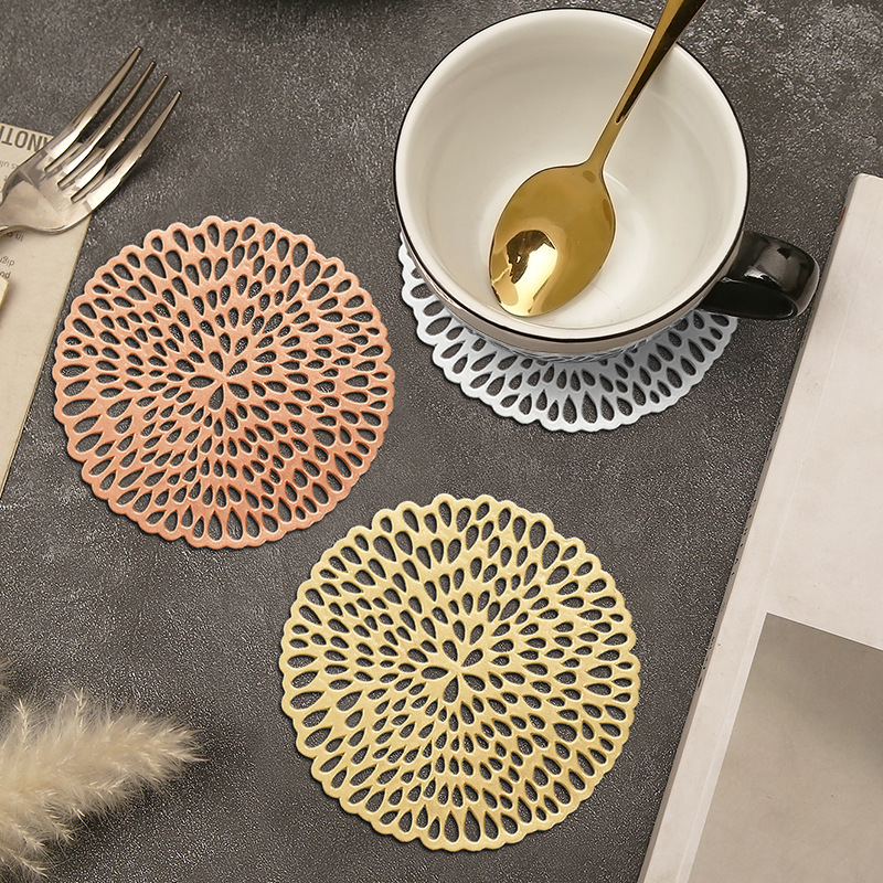 国境を越えた北欧風シンプルな家庭洋食マット透かし彫りpvc箔押しコースターホテル滑り止め断熱マット
