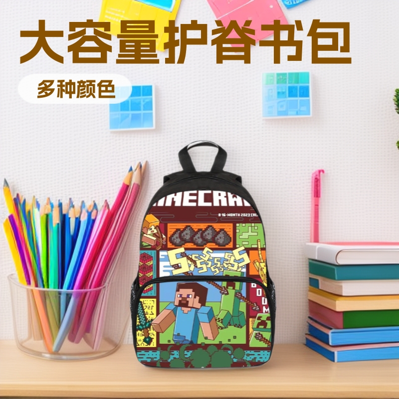 国境を越えた新しい Minecraft 子供用フロントバッグ幼稚園スクールバッグ小学生脊椎保護バックパック大容量バックパック