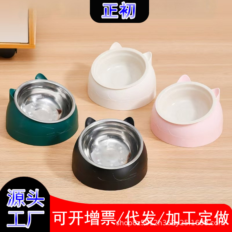 インターネット有名人のステンレス鋼猫ボウル猫耳斜め口ボウル保護頚椎ペット食事ボウル犬ボウル転倒防止猫用品