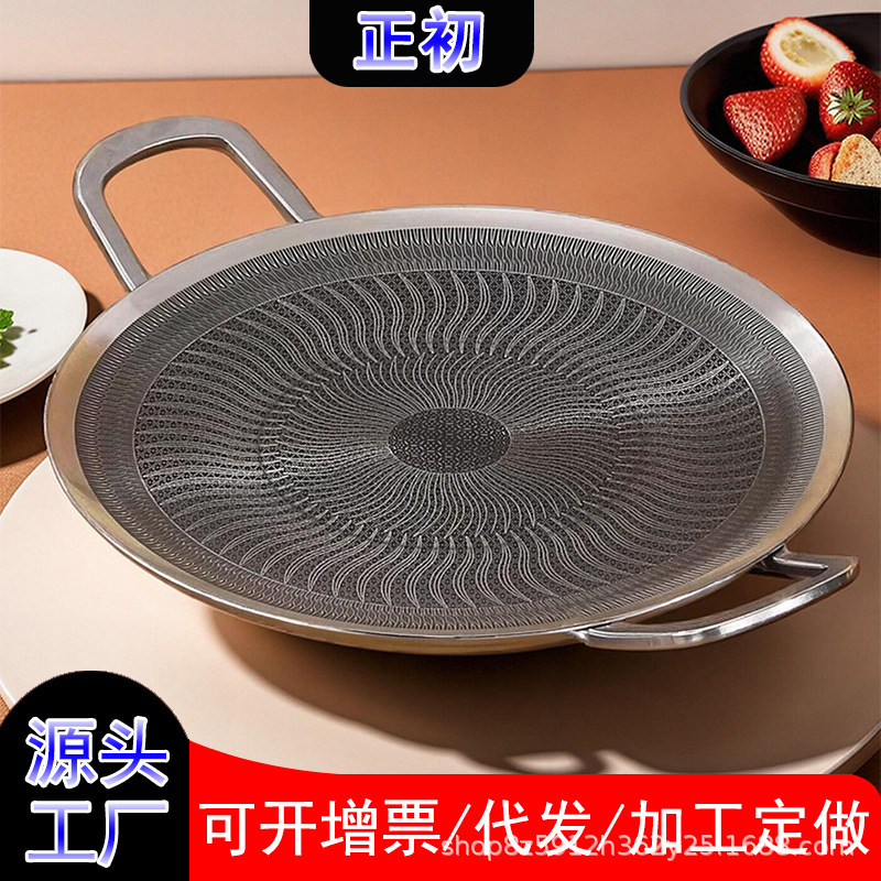 ステンレスの韓国式の焼き皿の焼き肉の皿は鍋の鉄板にくっつかないで家庭用の焼き肉の鍋の電磁ストーブの焼き皿を焼きます。