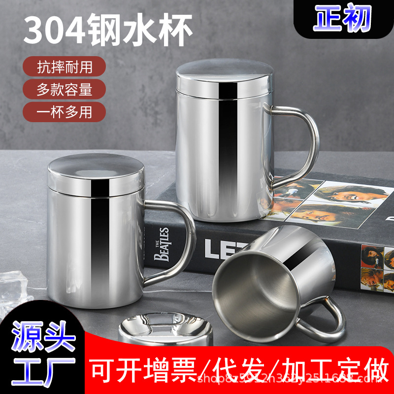 ステンレス二重マグカップ厚いコップ断熱パーマ防止蓋付きハンドル付きコップオフィス子供カップ