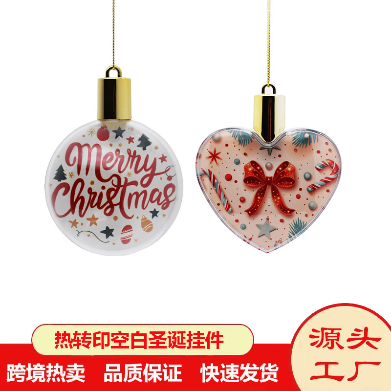 新商品熱転写クリスマスペンダントハート型円形球形熱昇華クリスマスペンダント空白紙DIY印刷
