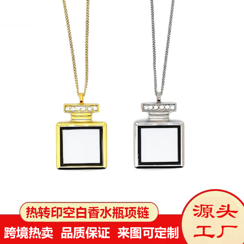 クロスボーダー热い贩売クリエイティブ热転写ネックレス香水瓶形ゴールドシルバーブランク热い升华ネックレスDIY印刷