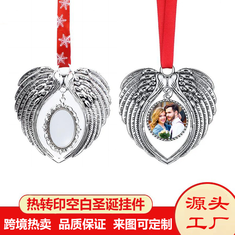 热転写ブランククリスマスの天使の翼のペンダント円形の楕円形の热い升华クリスマスの装饰の片面印刷