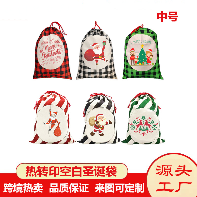 クロスボーダー熱売熱転写クリスマス袋空白熱転写クリスマス麻袋両面印刷複数サイズの中サイズ袋