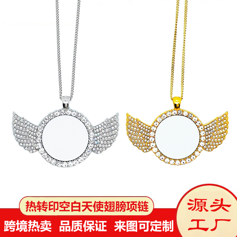 クロスボーダー热い贩売热転写プリントネックレス天使の翼ゴールデンシルバーブランク热升华ネックレスdiy印刷
