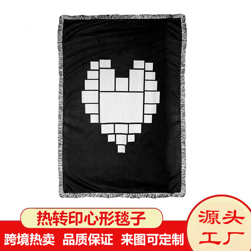 昇華ブランケット二層タッセル付き熱転写ハート型ブランケット 40x60inch DIY 印刷クリエイティブ印刷