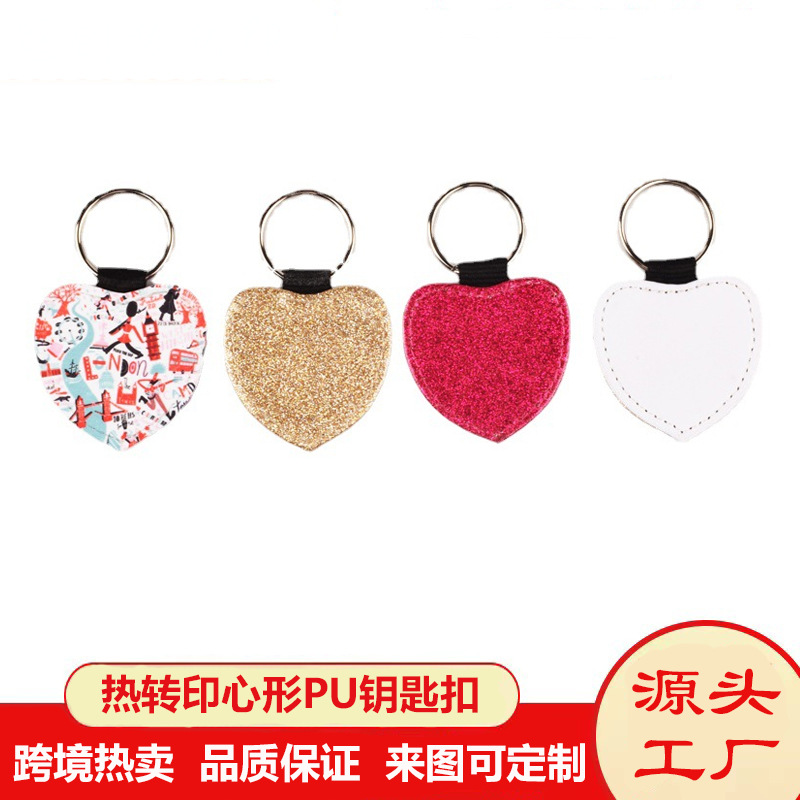 熱昇華pu革裏発光キーホルダー片面印刷熱転写ハート型puキーホルダー