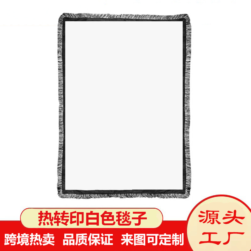 クロスボーダー熱昇華白色毛布40x60インチ黒地白面二層フリンジ付き熱転写毛布