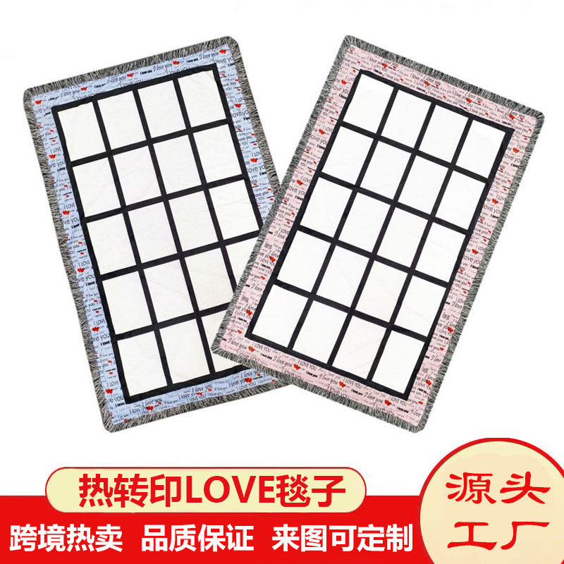 クロスボーダー热い贩売热升华ラブ毛布40x60インチ二段フリンジ付き20格热転写ブランケット