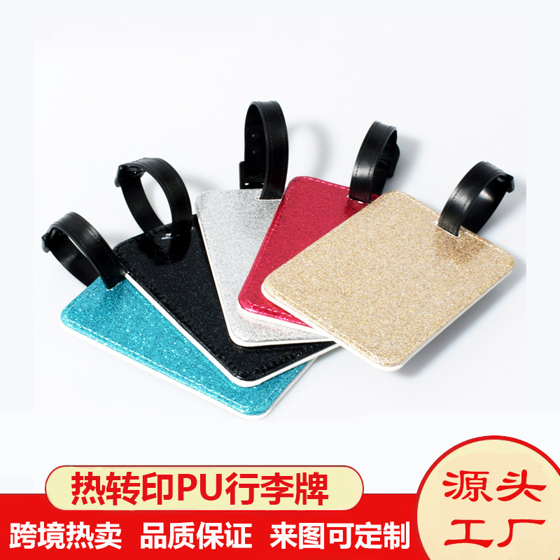 热い升华puレザー背面フラッシュ角型荷物タグ両面印刷热転写ブランクpu荷物タグ