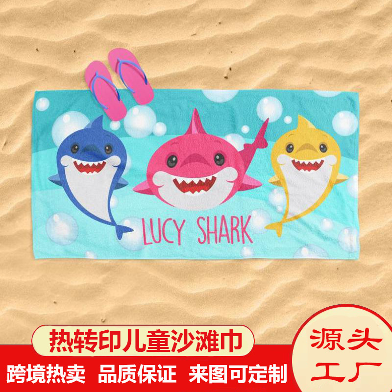 国境を越えて人気の熱転写子供用80*120cmビーチタオル、白の昇華型薄型モデル、吸水性が高く柔らかい