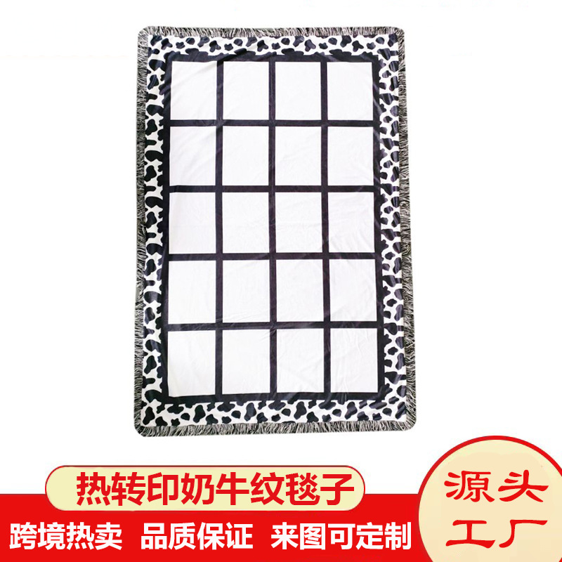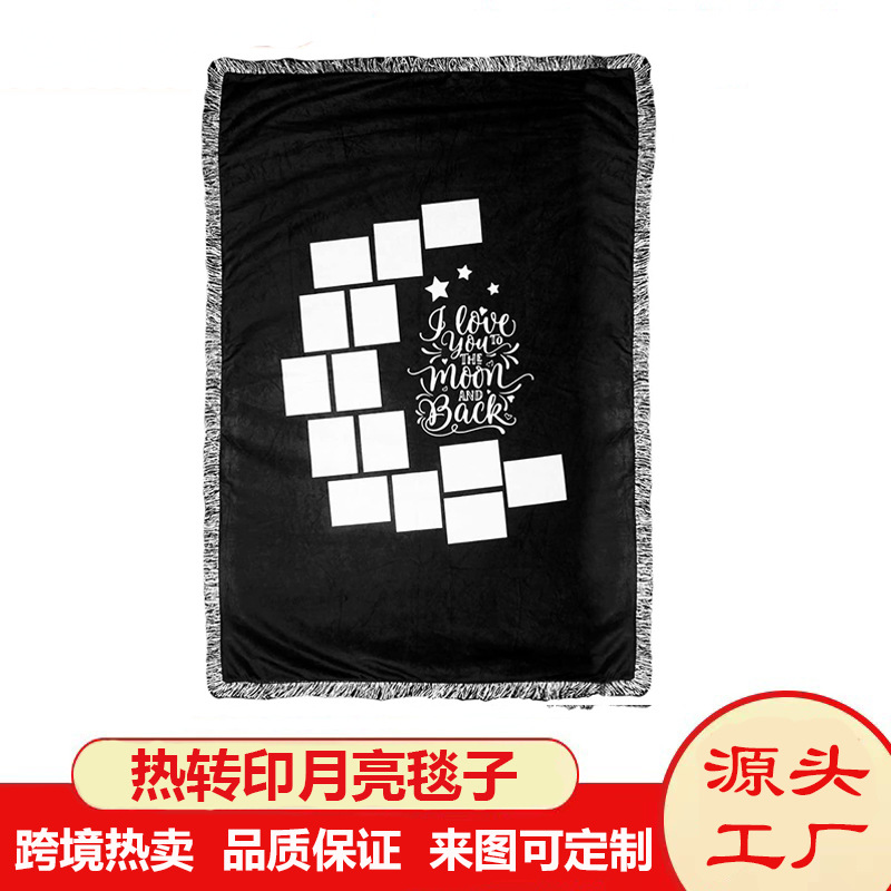 クロスボーダー熱昇華毛布40x60インチ黒地白面二重月帯流蘇熱転写毛布