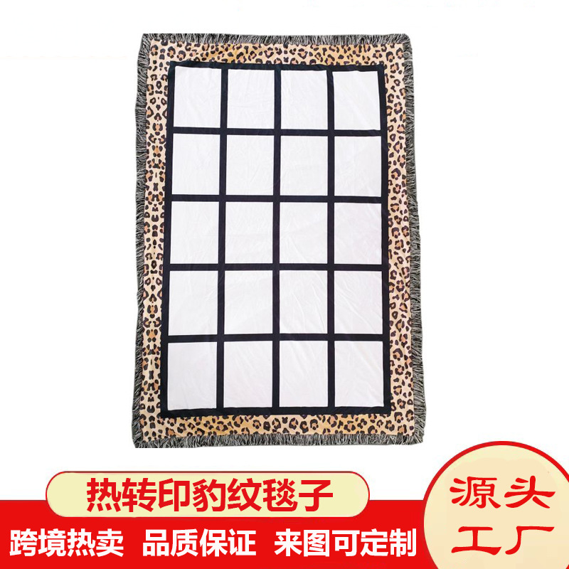クロスボーダー熱昇華ヒョウ柄毛布40x60インチ二重フリンジ付き20格15格9格熱転写毛布