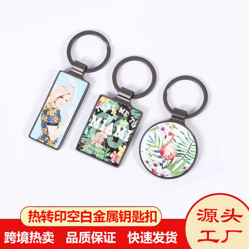 クロスボーダー热い贩売热転写印刷ブランクブラックゴールド金属キーホルダーホット升华亜鉛合金キーホルダー片面印刷