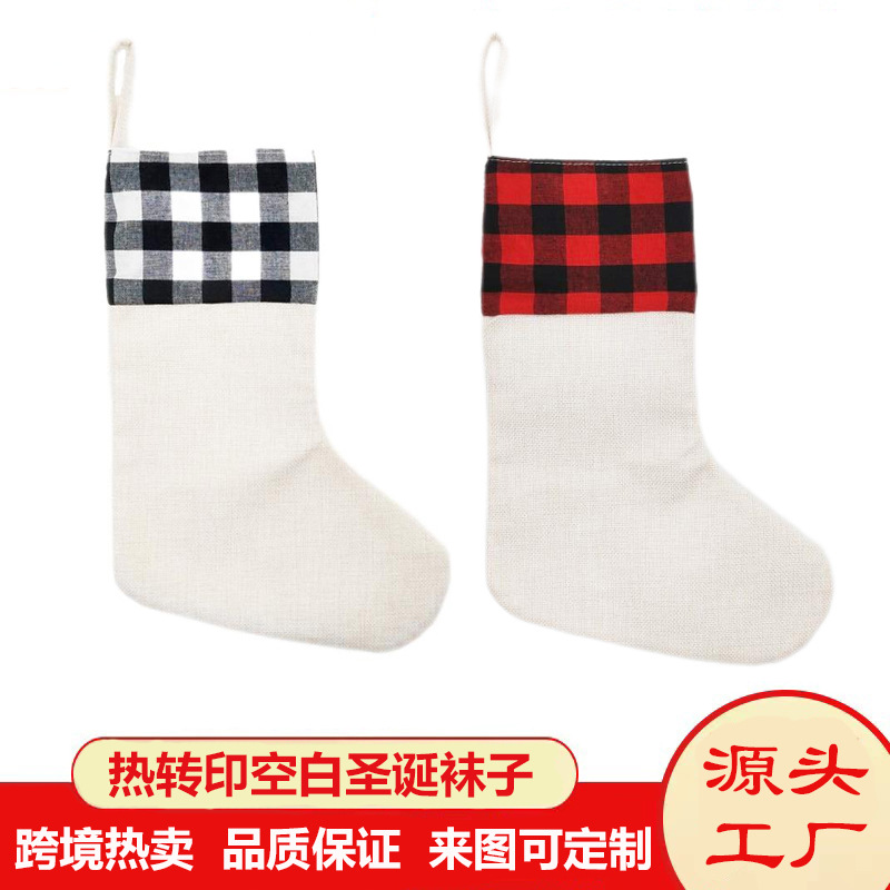クロスボーダー热い贩売リネン材质热転写印刷クリスマス靴下ブランク热い升华クリスマス靴下両面diy印刷
