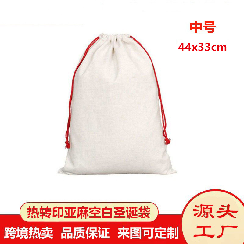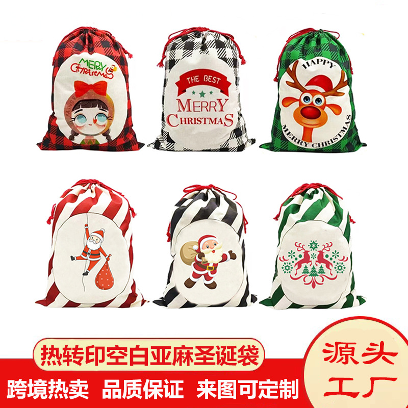 越境で人気の熱転写クリスマスバッグ、無地の熱転写クリスマス麻袋、片面印刷、様々なクリスマス麻袋