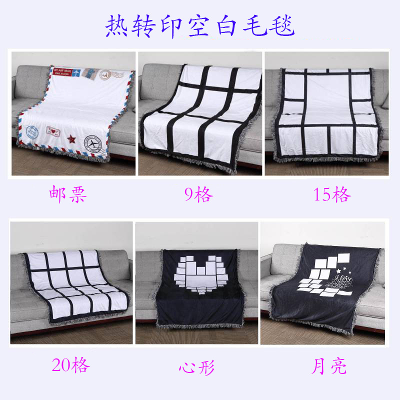 クロスボーダーブランケット、二重構造、9グリッド、15グリッド、20グリッド、月とハートのスタンプ柄、タッセル付き、熱転写ブランケット、タッセルデザイン