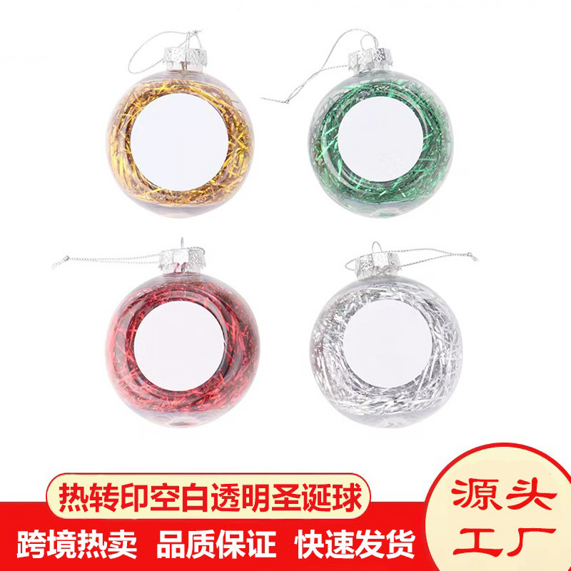 熱転写ブランク4色直径8cm円形透明プラスチックボール糸付き熱昇華クリスマスボールdiy印刷