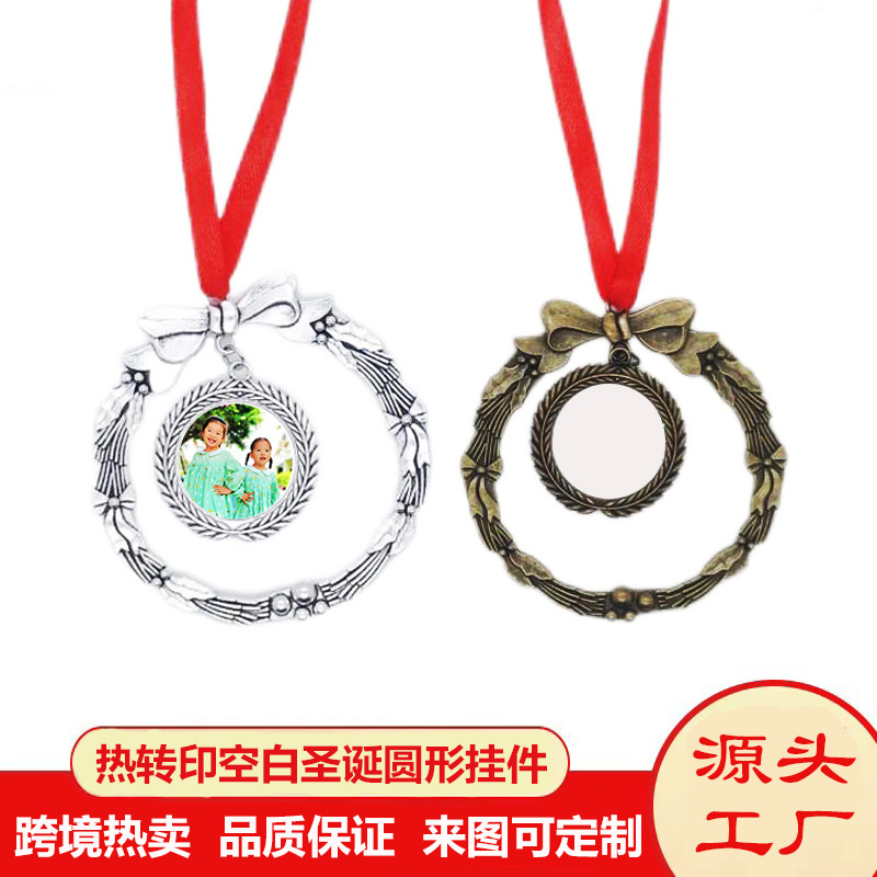 熱転写クリスマスキーペンダントアルミシート両面印刷シルバー銅色花リング熱昇華クリスマスアクセサリー