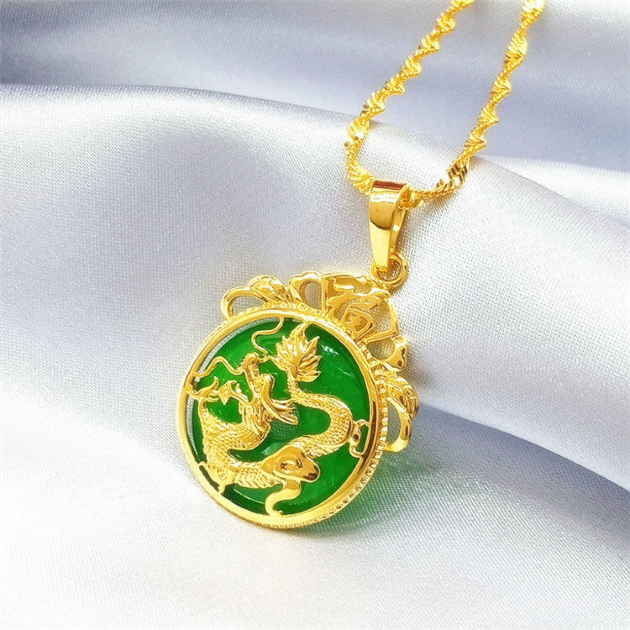 玉は金の竜の札の緑の宝石のペンダントの福の字を入れて平安です。