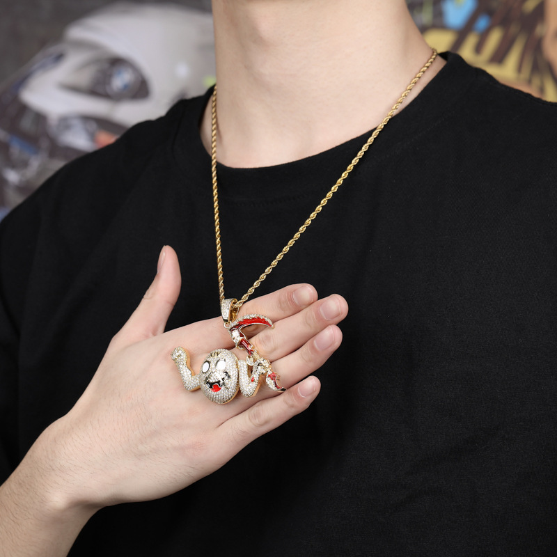 ヒップホップの爆発的な個性の復古の仮面のマスクは欧米の潮流のアクセサリをぶら下げて小さくジルコンのネックレスのメーカーを入れて直接販売します。