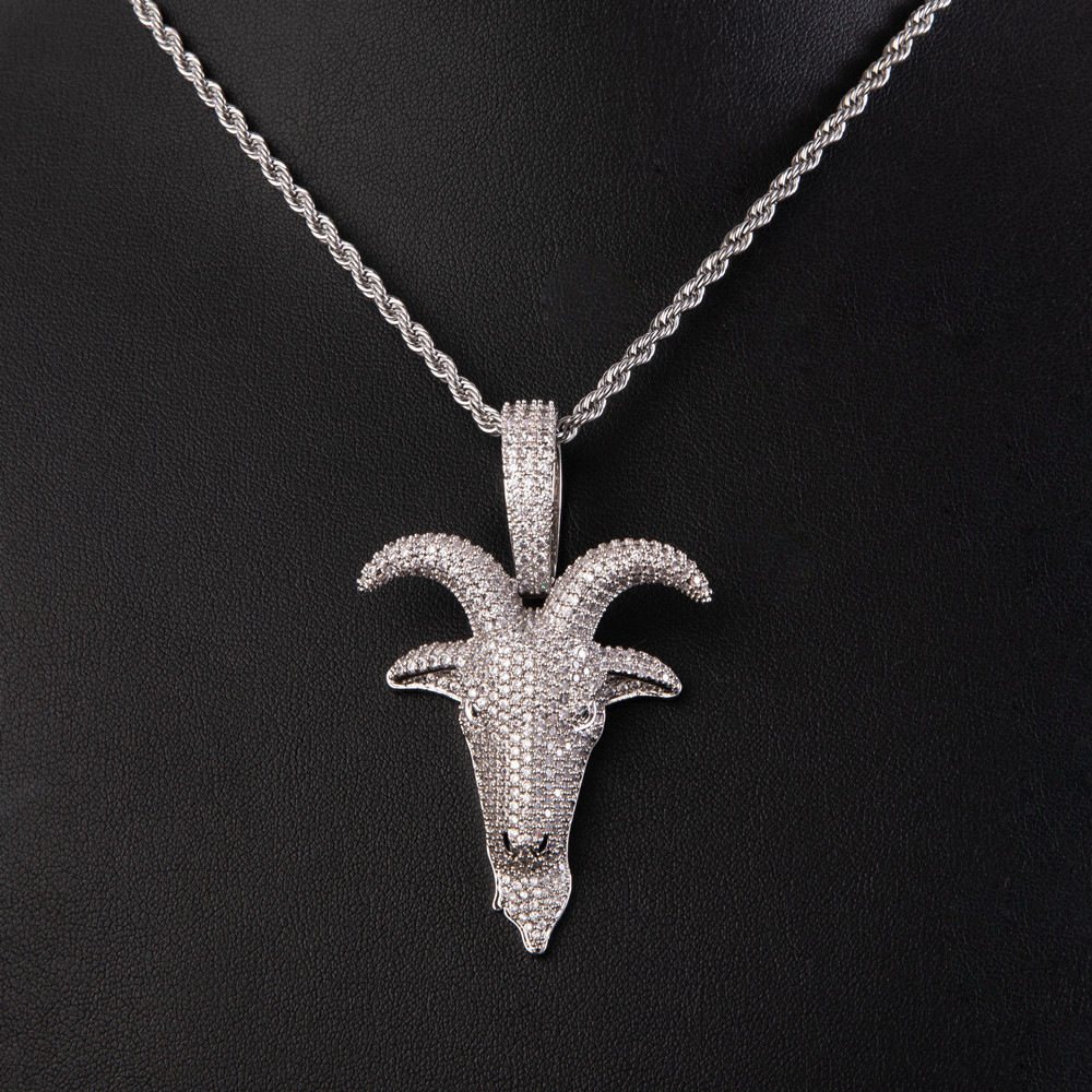 新型の欧米のヒップホップのペンダントは小さくジルコンの羊の頭の潮人の個性のネックレスの装飾品を入れて代行します。