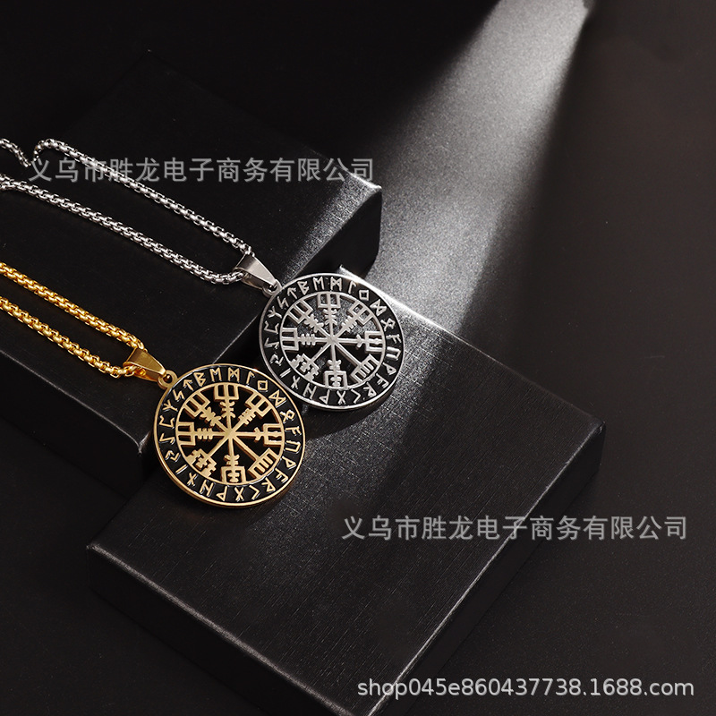 国境を越えてよく売れているチタン鋼北欧維京毛衣チェーンストラップコンパスペンダント男性潮人アクセサリー長