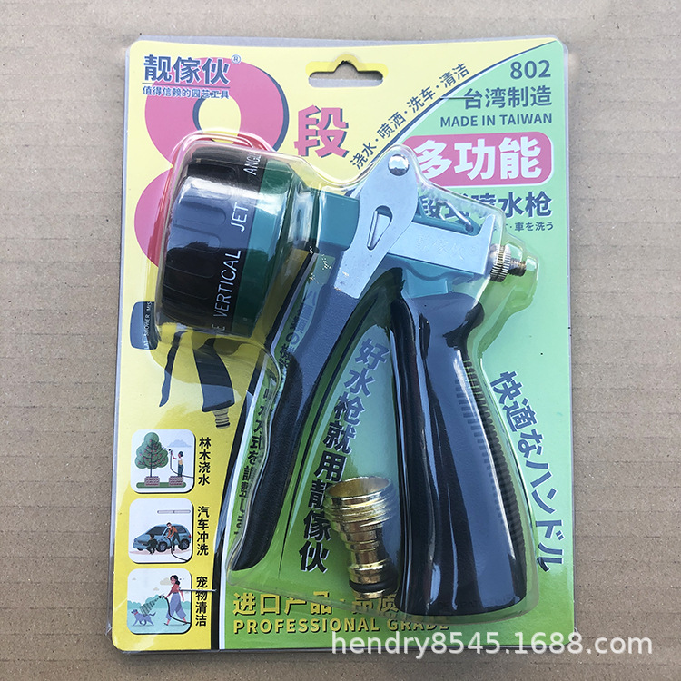 台湾の美人の仲間-合金の銃の体の802型の8機能の洗車の水鉄砲-花園は花のスプレーの銃をやります