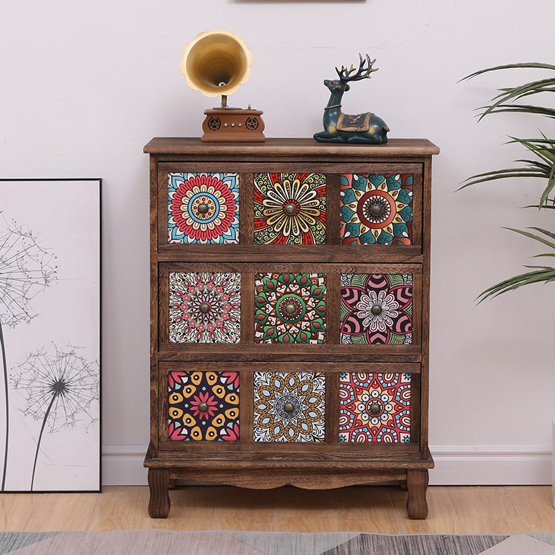 アメリカン無垢材収納キャビネット、レトロなリビングルームのダンスキャビネット、塗装された引き出し型収納キャビネット、バルコニー多層収納キャビネット、シンプル