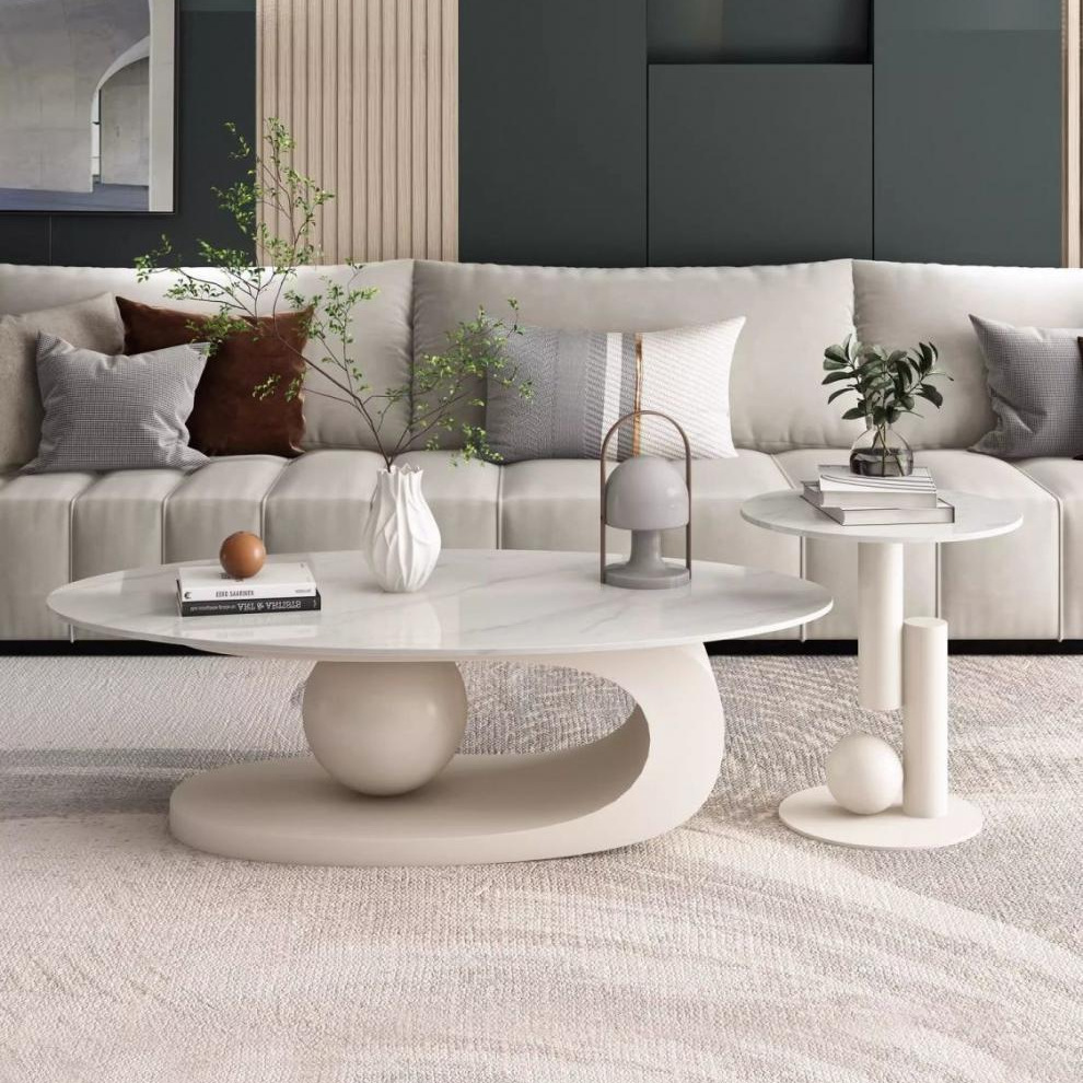 楕円形のスレートコーヒーテーブル、シンプルな小さなアパート、モダンなホームリビングルームのコーヒーテーブルの組み合わせ、イタリアンライト高級コーヒーテーブル