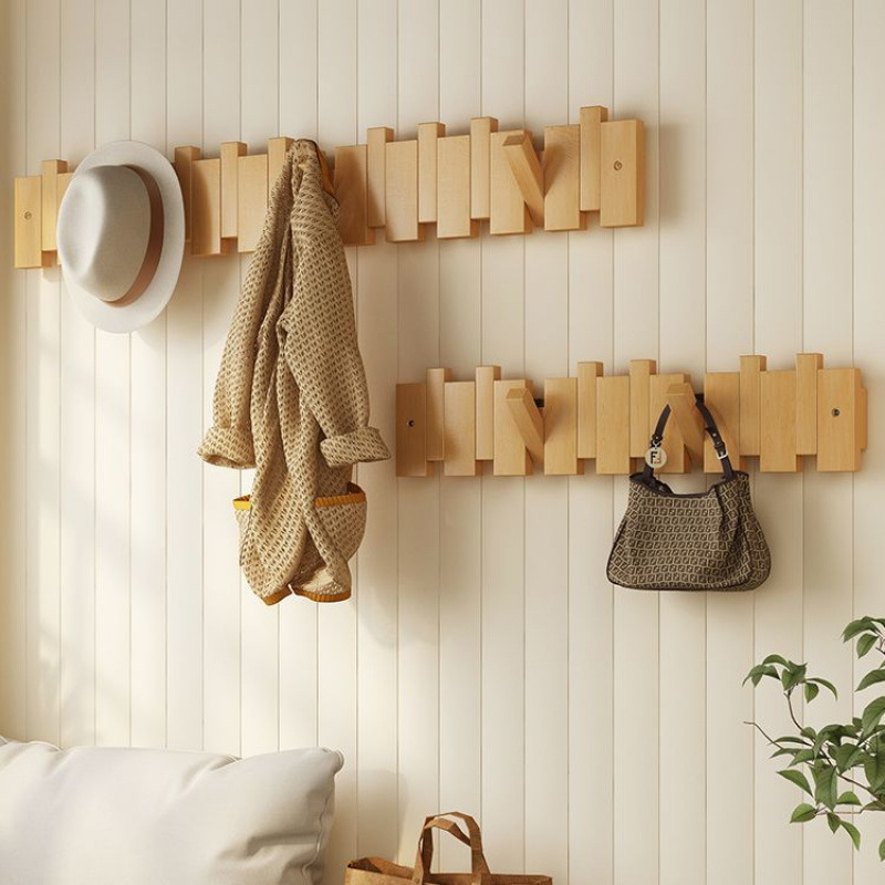 ピアノキー洋服ラック無垢材パンチフリーコートラックスペースを取らない壁掛け玄関ドア収納ラック