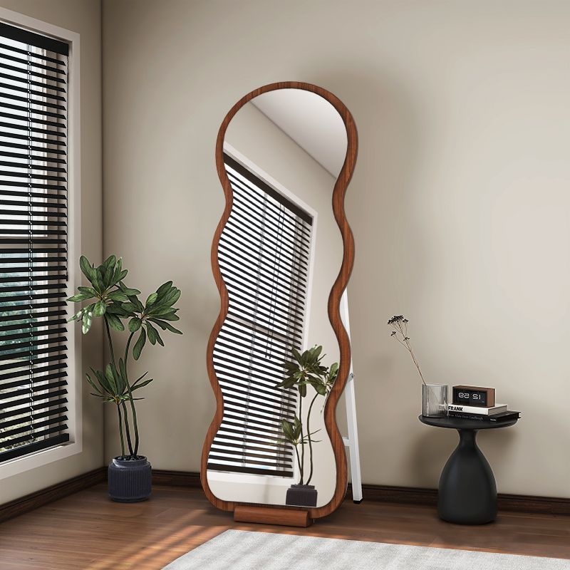 中古全身鏡、家庭用床置き鏡、ネット有名人の特殊形状鏡、壁掛け高級波型姿見、寝室用試着鏡