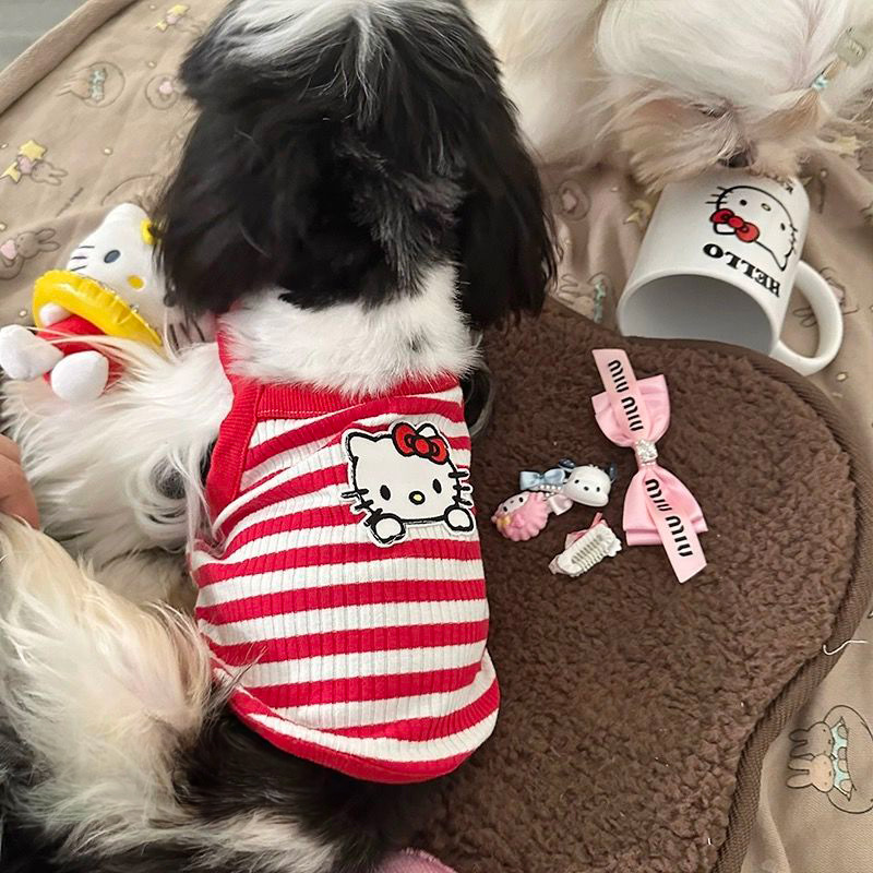 かわいい猫の犬の服は底のテディを打って熊のロックの夏の春秋のペットのバラの赤いストライプの薄い綿毛の上着に比べます。