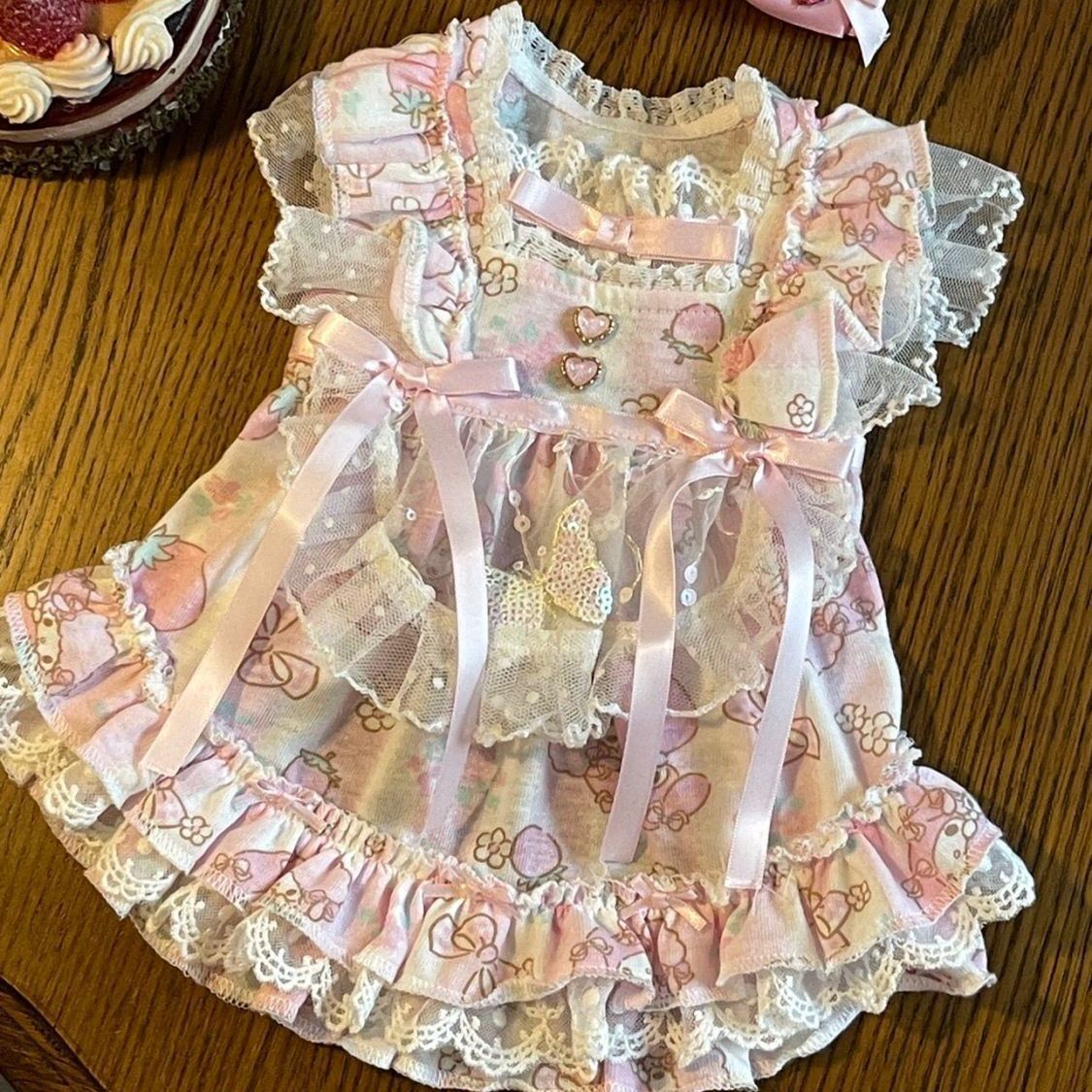 ペット服春夏新作花柄レースストラップショートタイププリンセススカートテディビーベア犬猫ルームウェア