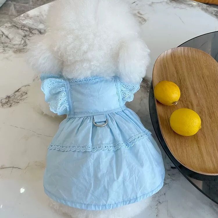 ペット服春夏新作ピンクブルー花ストラップショートタイププリンセススカートテディビーベア犬猫ルームウェア