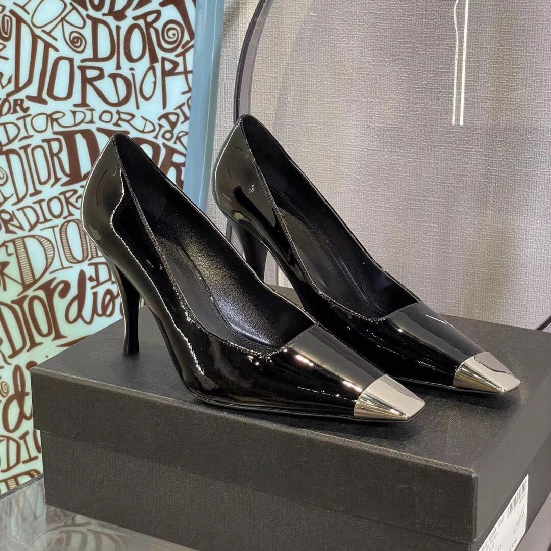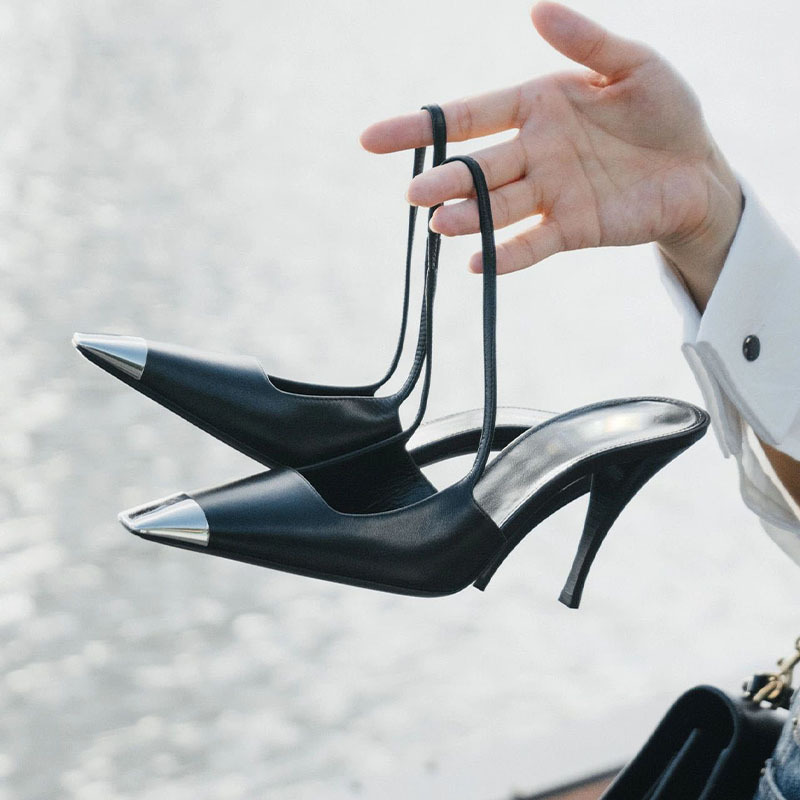 ローズ・パク・カイヨンと同じスタイルの女性用ハイヒール、2024秋冬メタルスクエアトゥスティレットヒール、女性用直販超ハイヒール